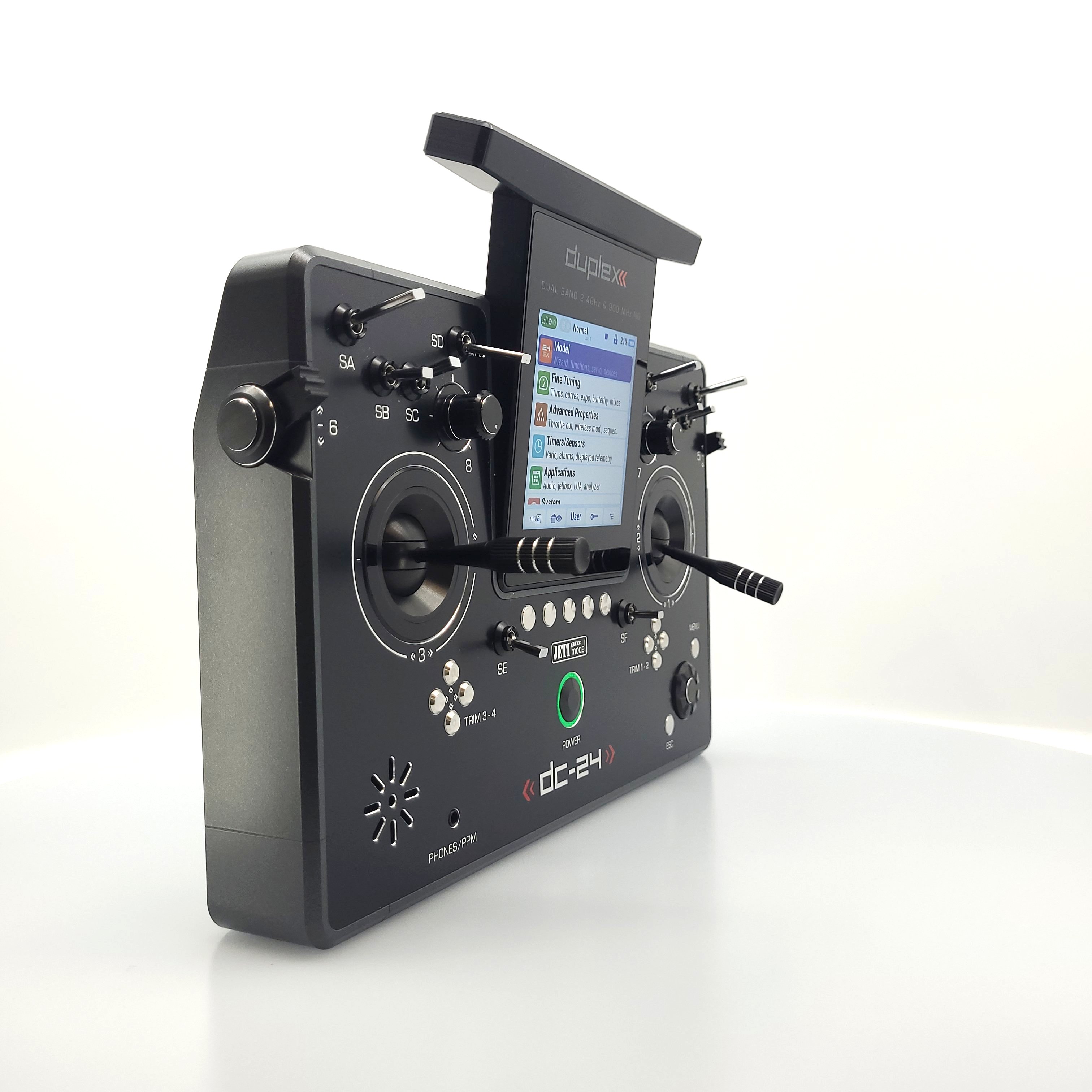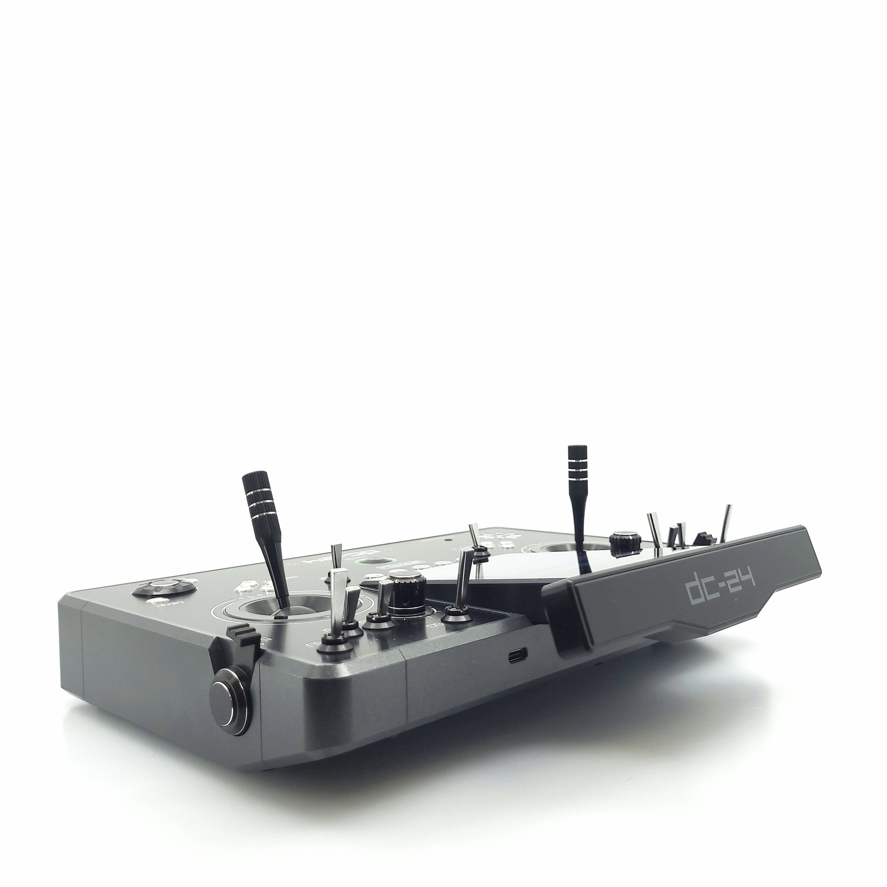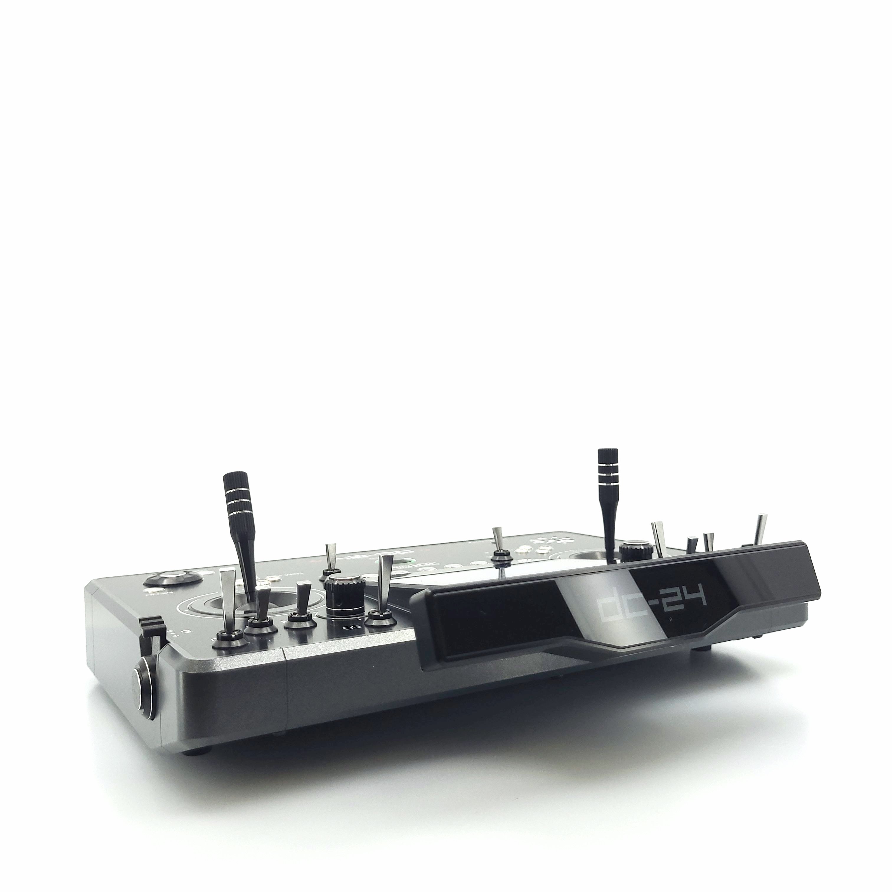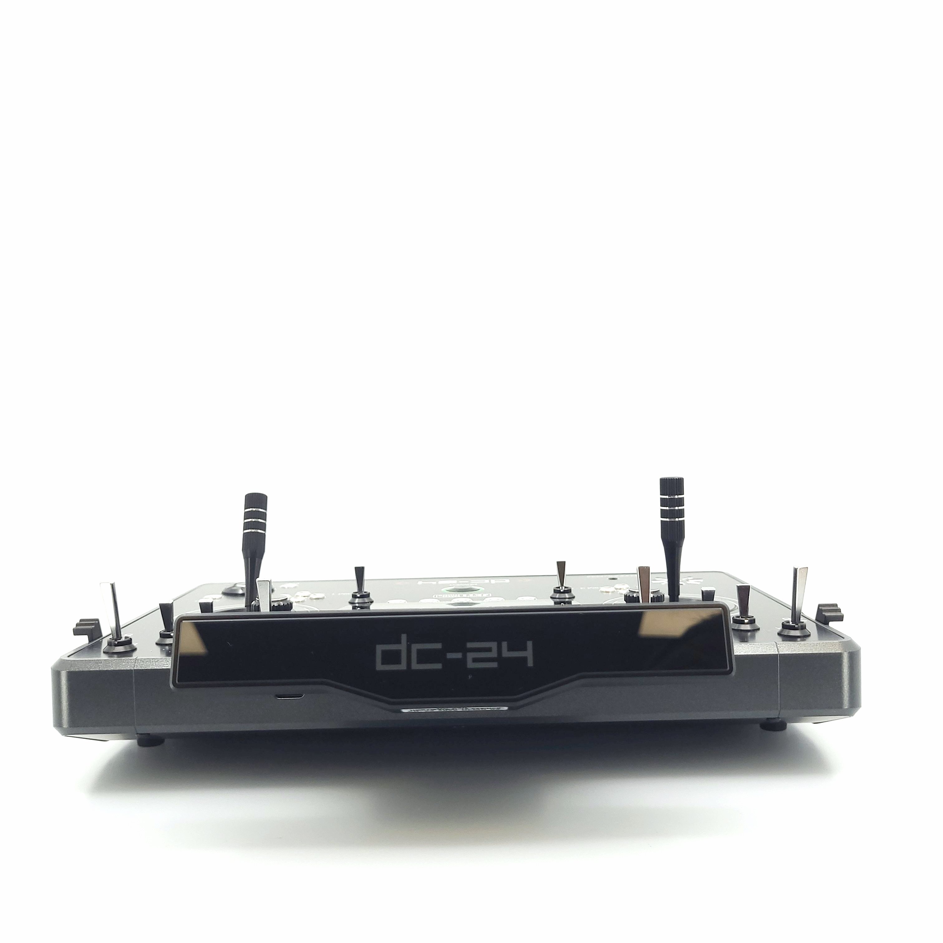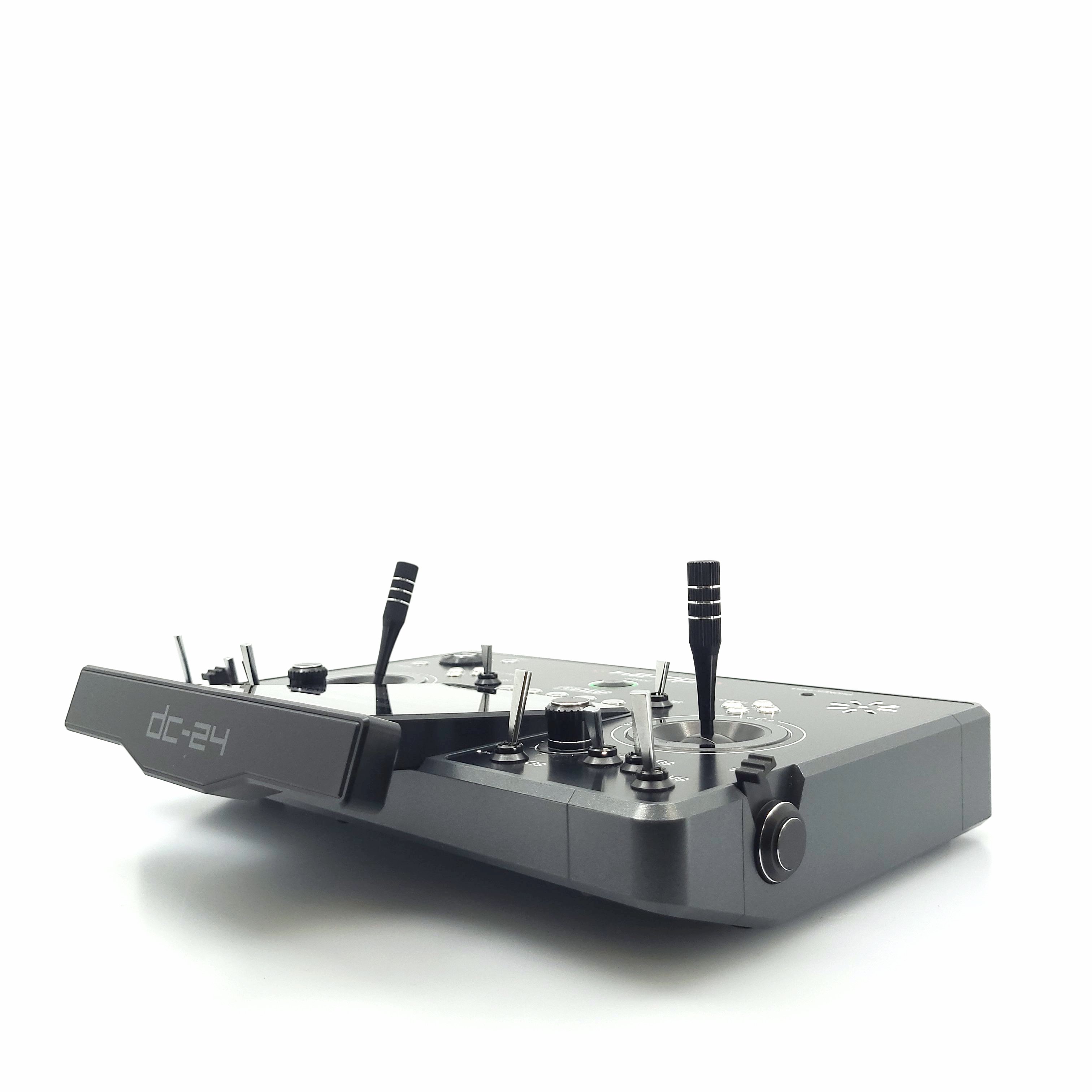 The second generation of the DC-24II transmitter series features a timeless design with a redesigned and lighter frame for enhanced comfort. It now supports Bluetooth connectivity with smartphones and includes new stick controls with front side adjustments.