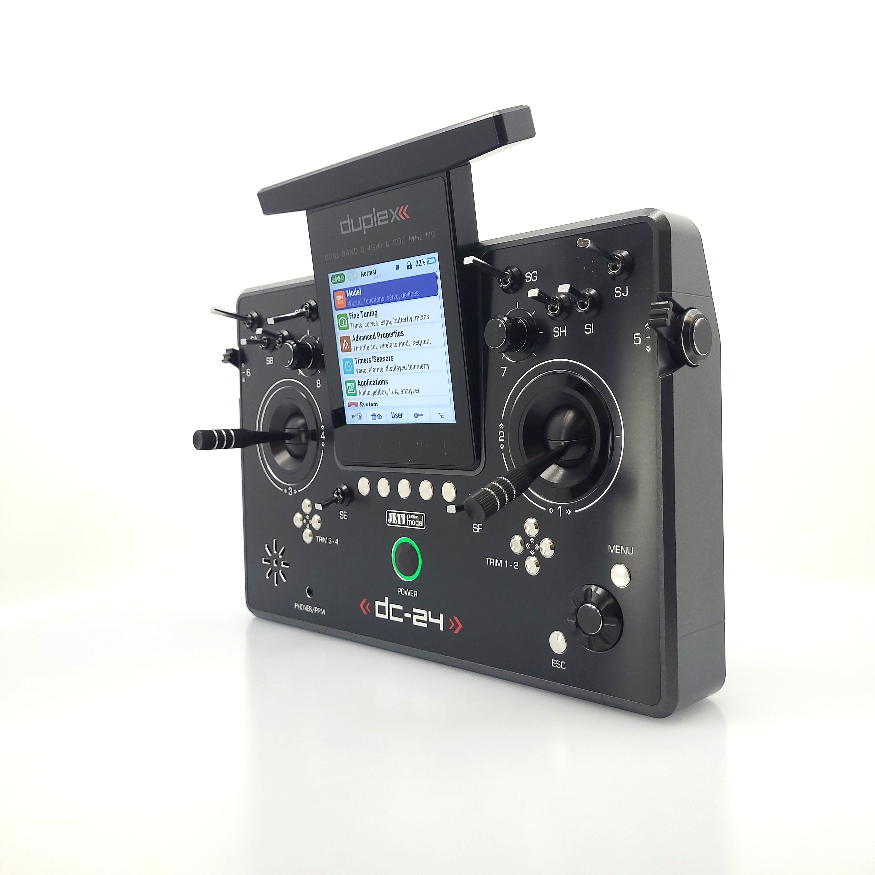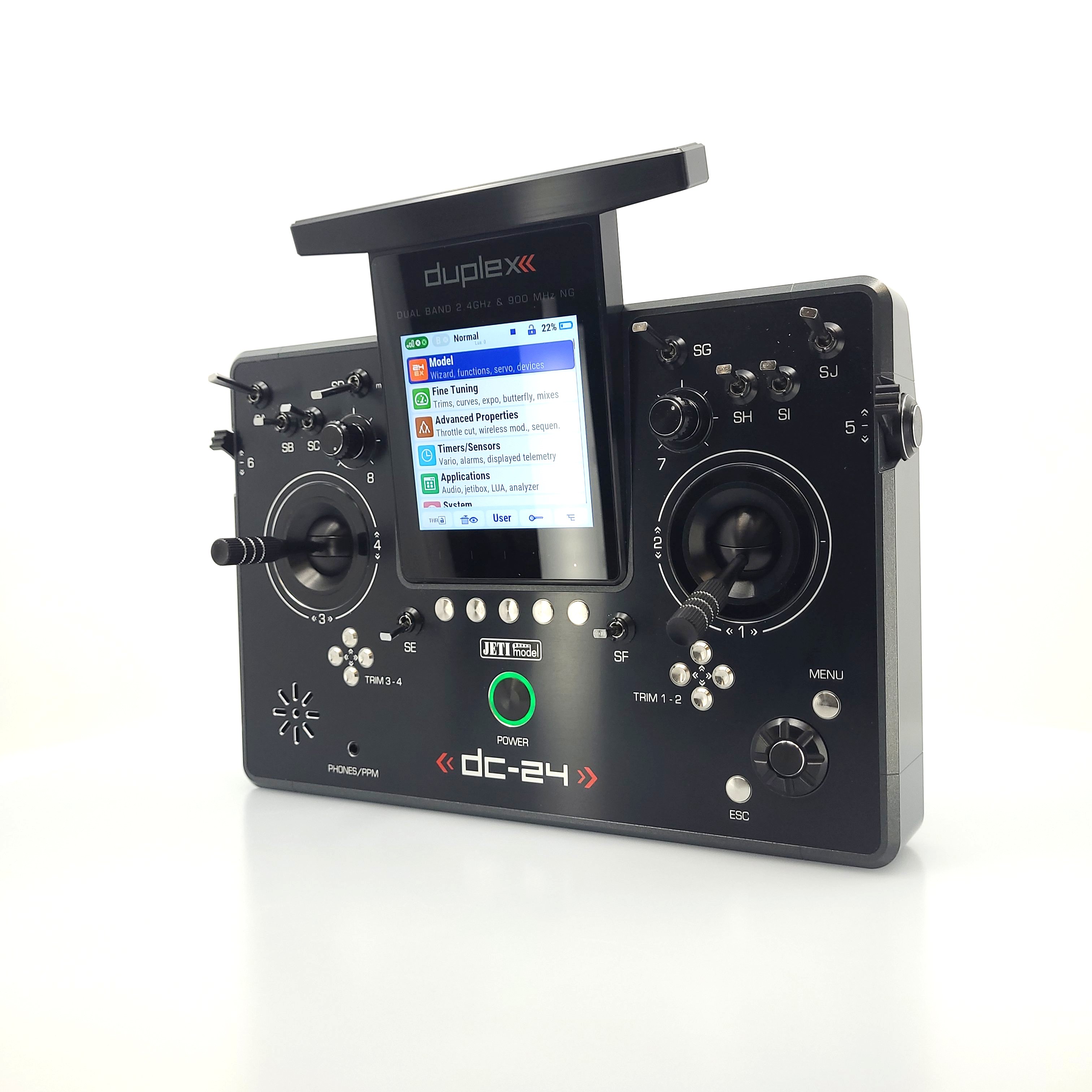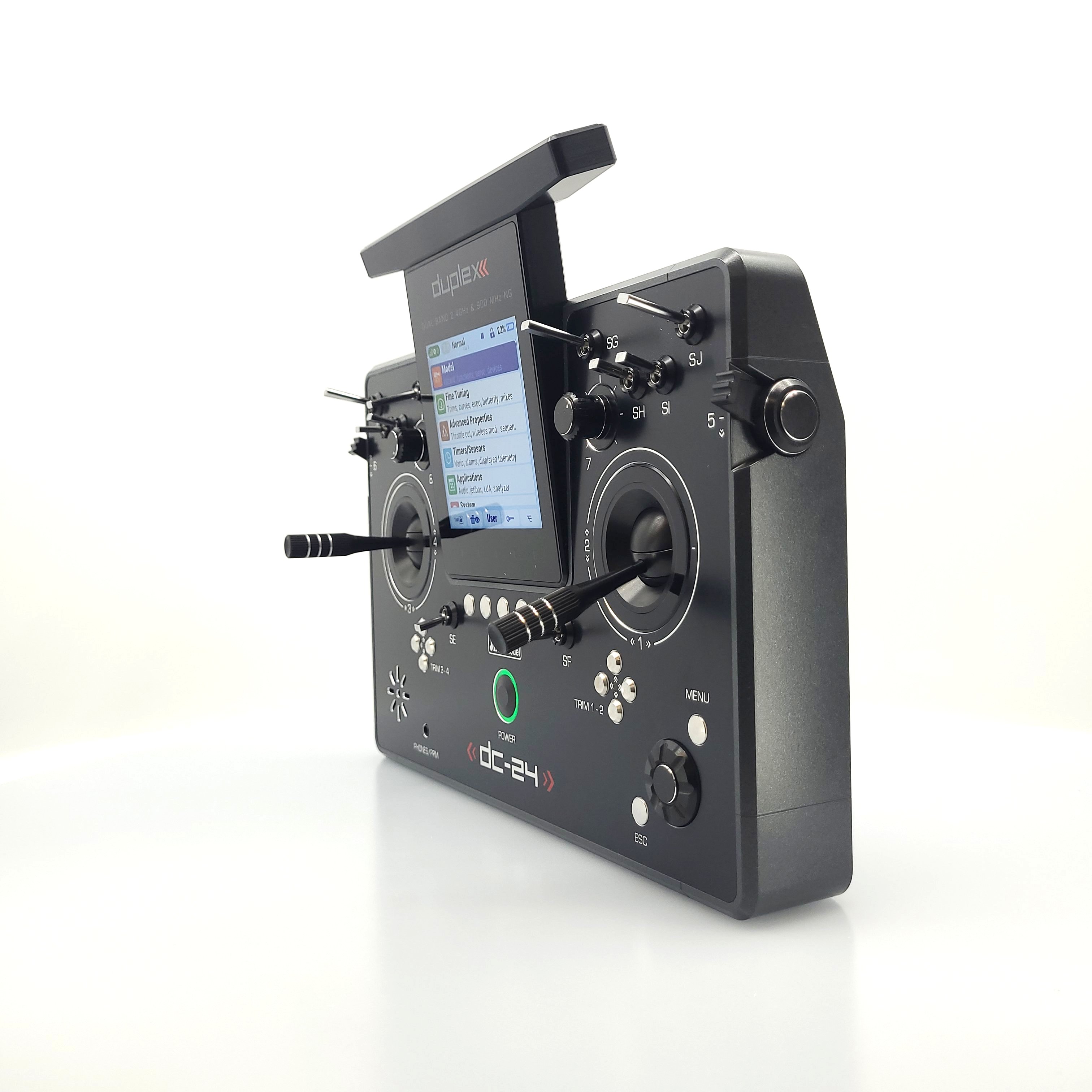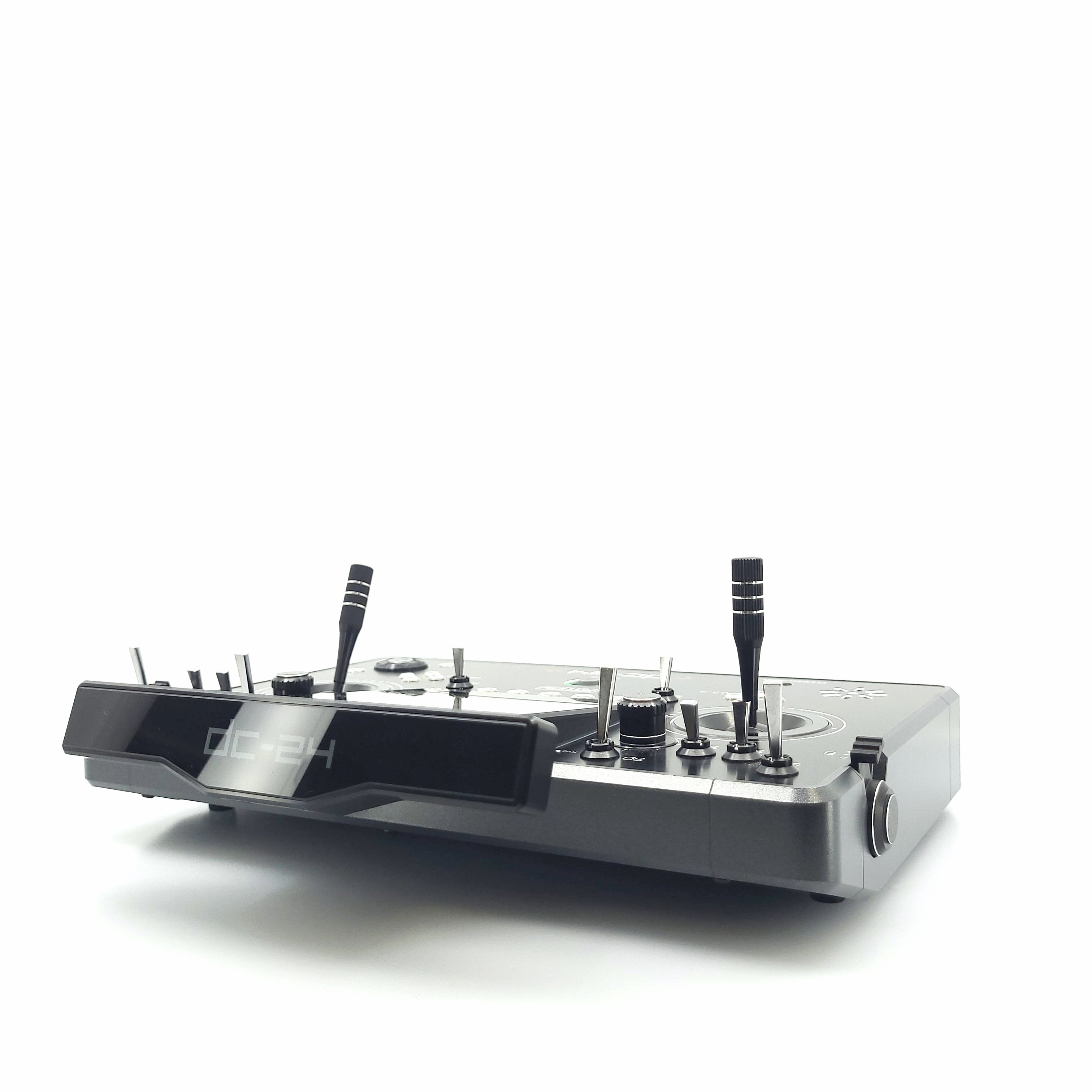 The second generation of the DC-24II transmitter series features a timeless design with a redesigned and lighter frame for enhanced comfort. It now supports Bluetooth connectivity with smartphones and includes new stick controls with front side adjustments.