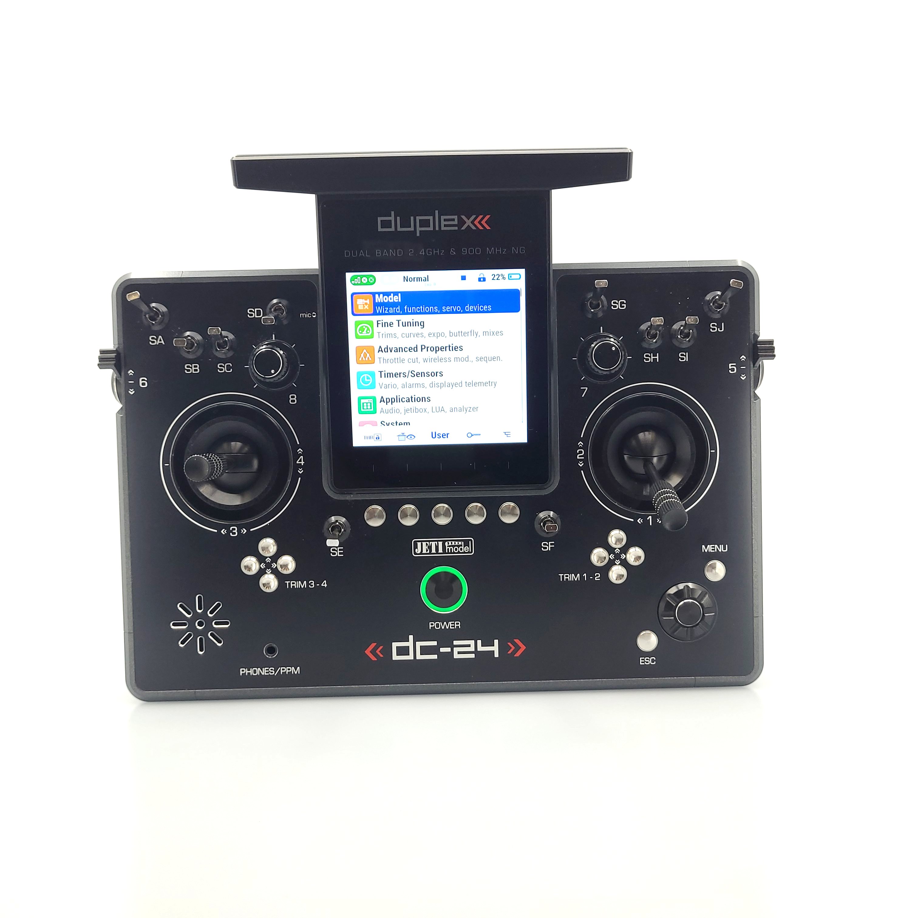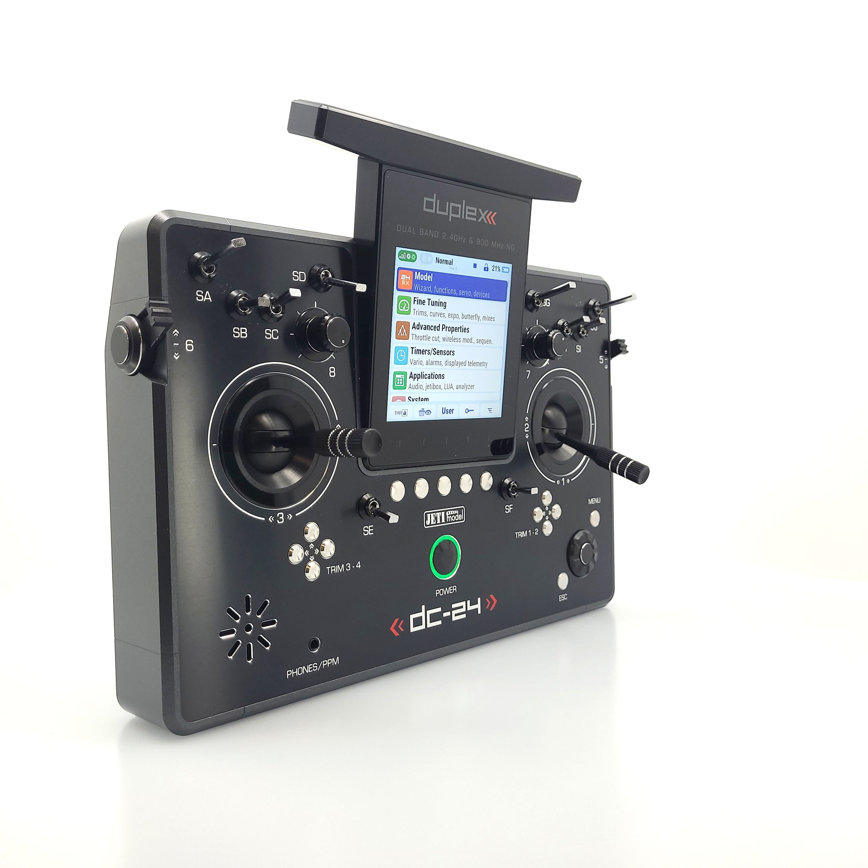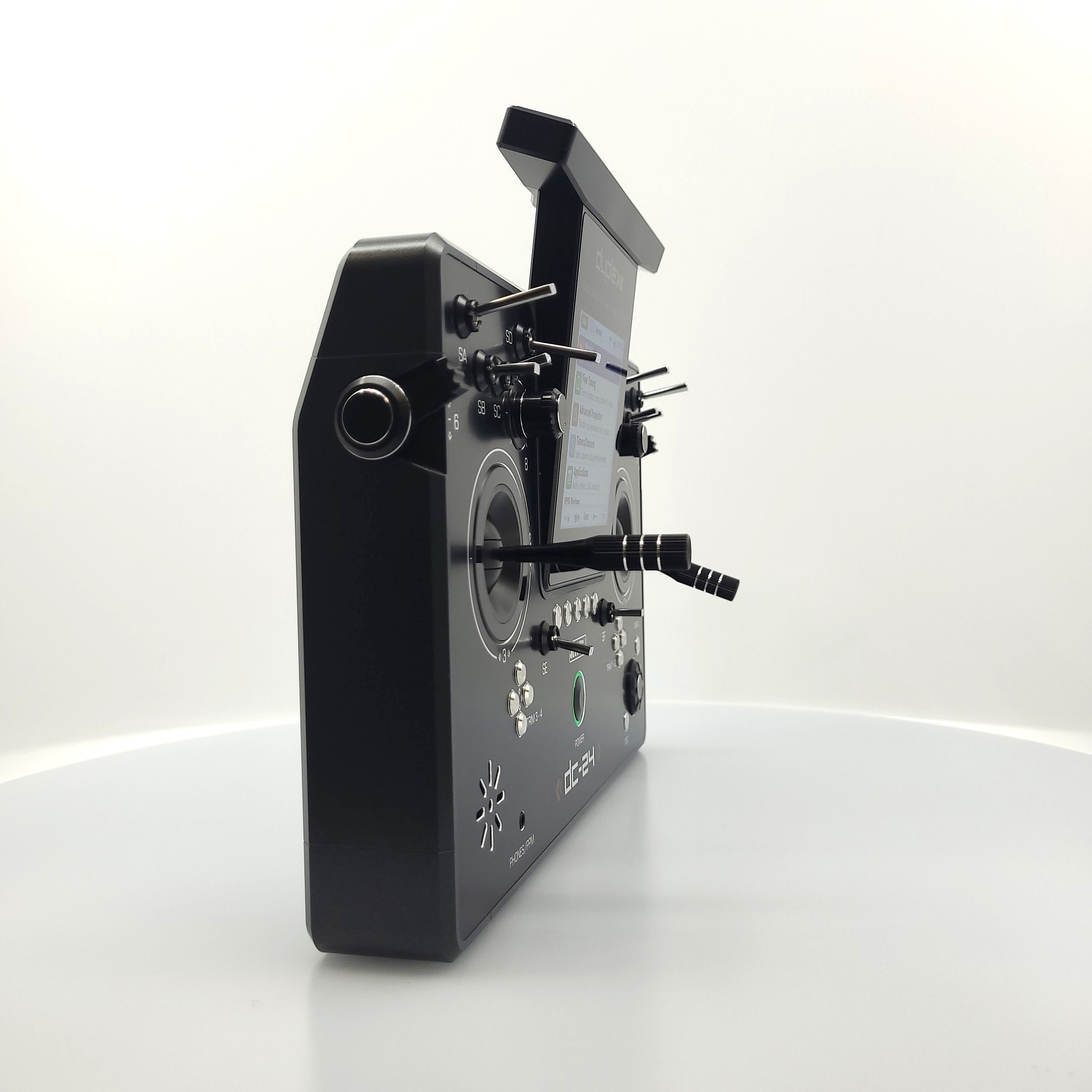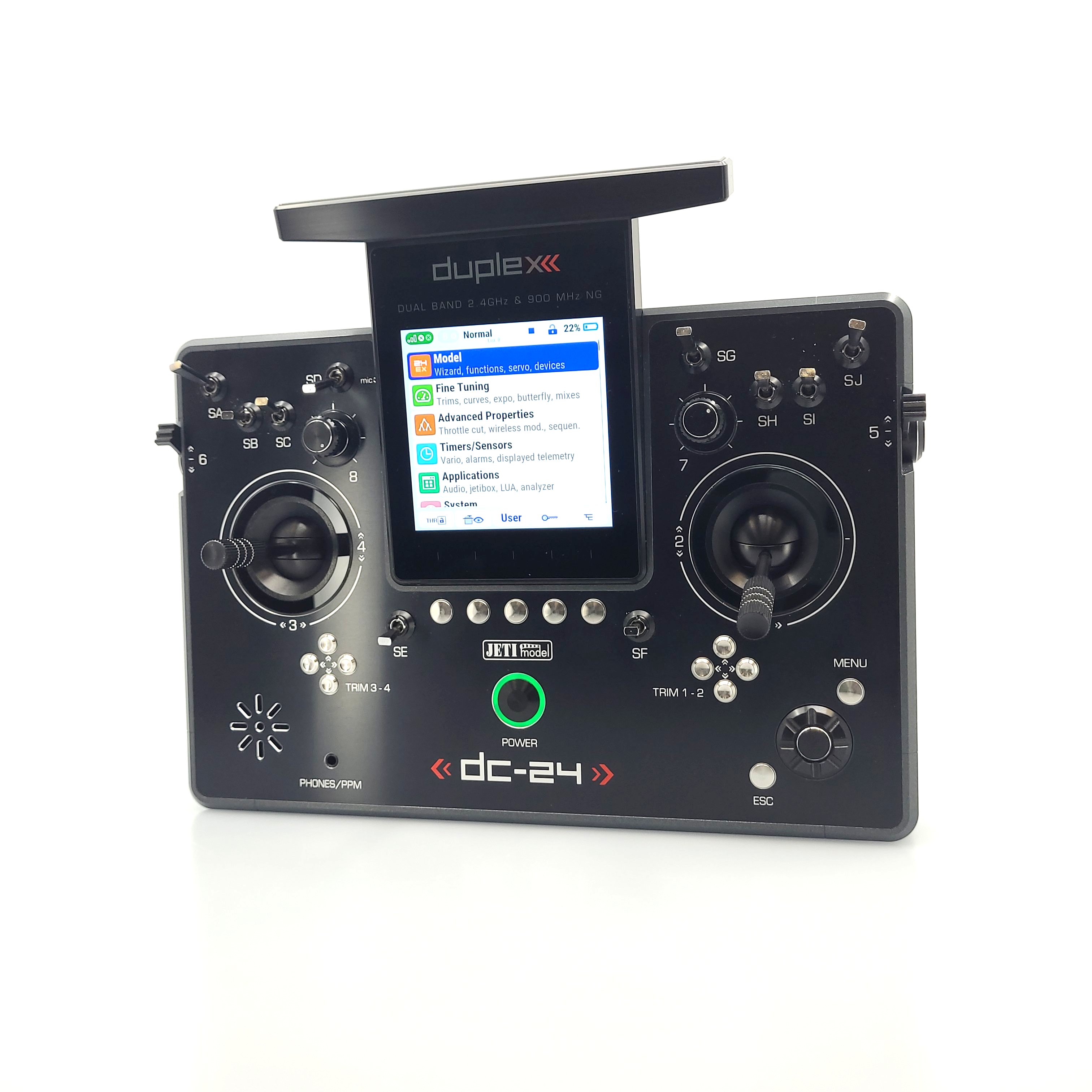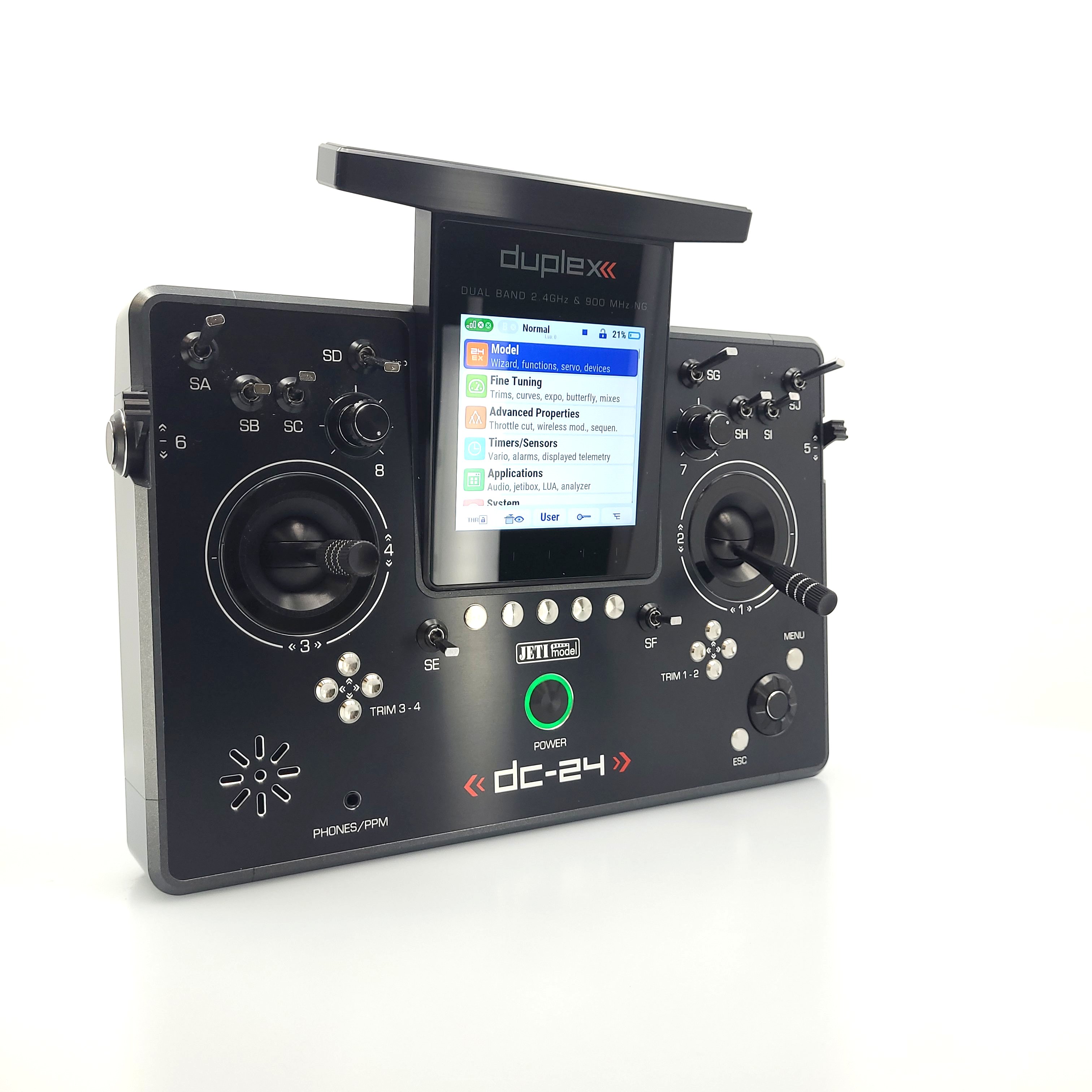 The second generation of the DC-24II transmitter series features a timeless design with a redesigned and lighter frame for enhanced comfort. It now supports Bluetooth connectivity with smartphones and includes new stick controls with front side adjustments.