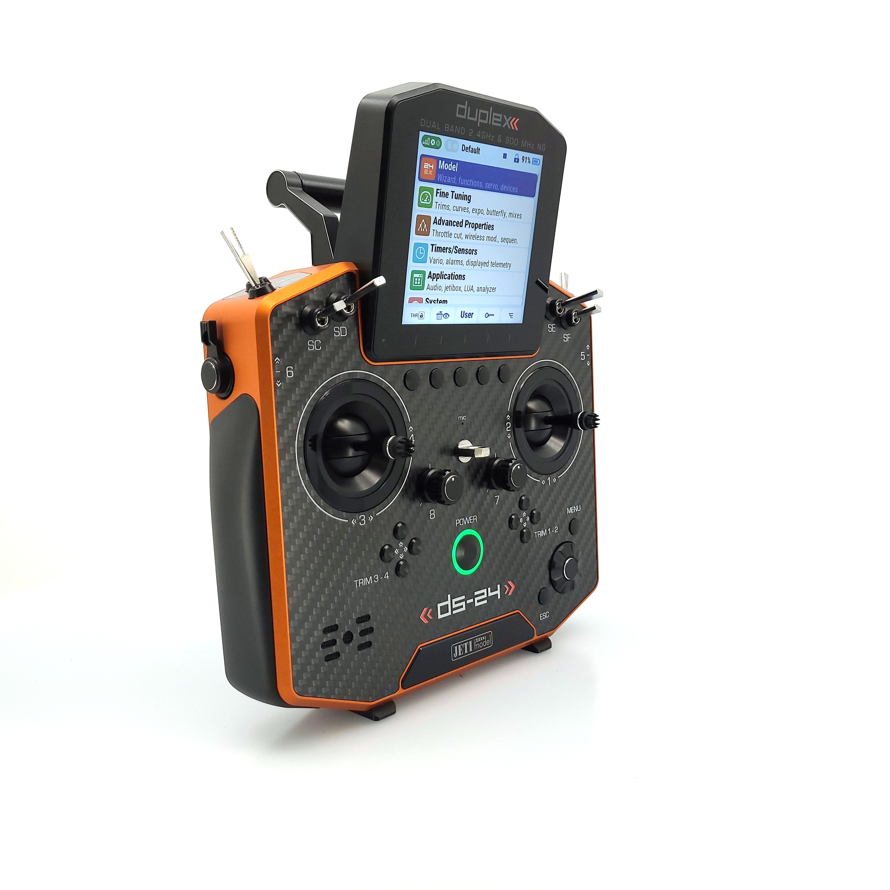 The second generation of the DS-24II transmitter series features a timeless design with a redesigned and lighter frame for enhanced comfort. It now supports Bluetooth connectivity with smartphones and includes new stick controls with front side adjustments.