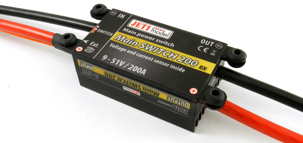 The Main Switch can measure voltage, current, consumed capacity of the battery connected in the model and also temperature. Alarms can be set to monitor maximum current, minimum voltage, maximum consumed capacity, and maximum temperature.