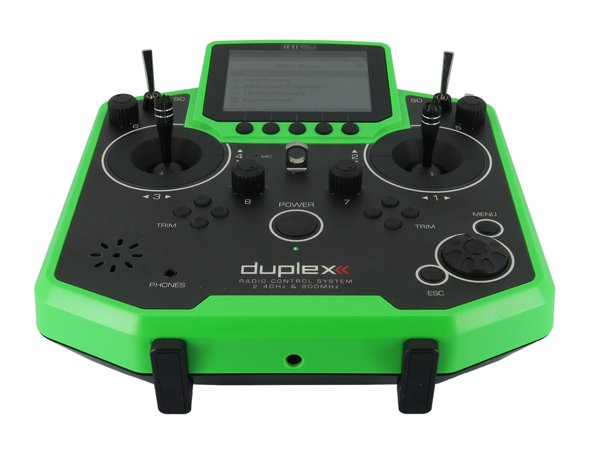 The DUPLEX EX family of products have been equipped with an improved real-time telemetry system which can be viewed on the LCD transmitter display. The transmitter allows the setup of voice notifications, both preinstalled and user created, which can be related to telemetric values, user set alarms, or signals which have been assigned to conditions of various control elements.